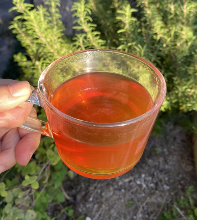 生産者の名前が書いてある、誰が作っているのかわかる、ってうれしいよね〜。はちみつ&ウイスキー入り紅茶でひと息。庭では、今年初の芽キャベツ、カリフラワーがすくすく育っている。