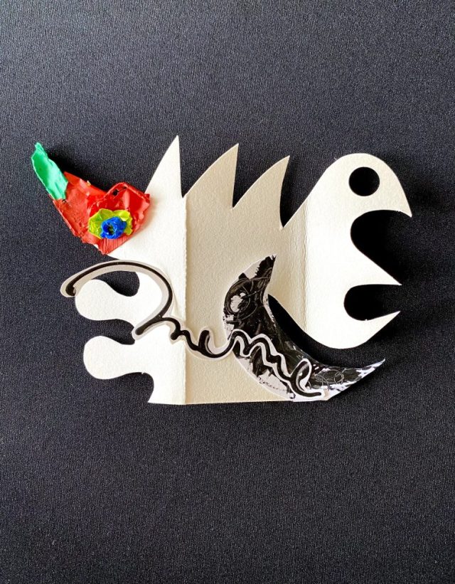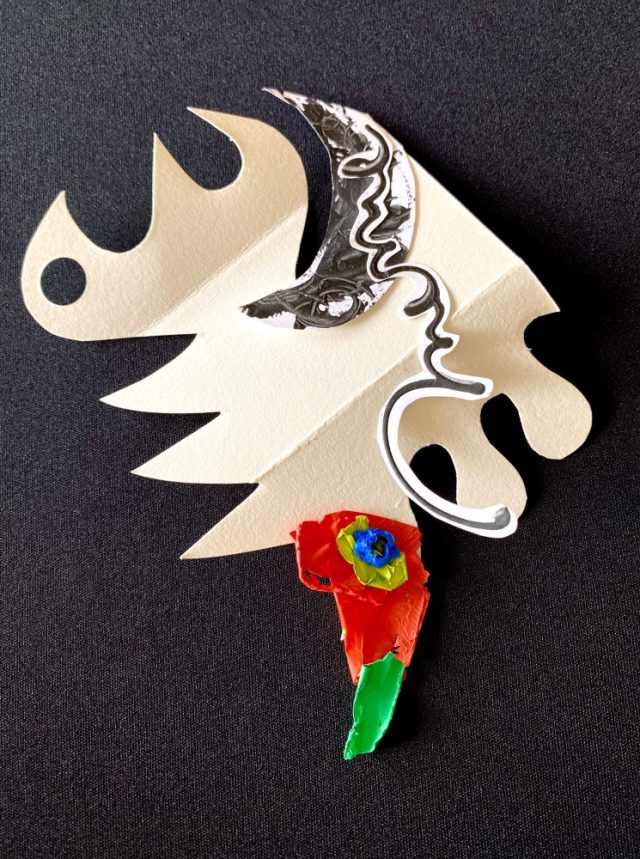 聖獣の中に宿る、子供(だった頃の自分)。固まった絵の具のカケラと、紙を組み合わせて。