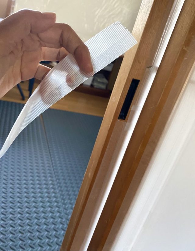 ホームセンターで入手した素材を使って。なんせ築30年以上の和風建築。柱と砂壁、引き戸、窓など隙間だらけ。そのせいで、家の中にぴゅ〜ぴゅ〜と風の通り道ができる。