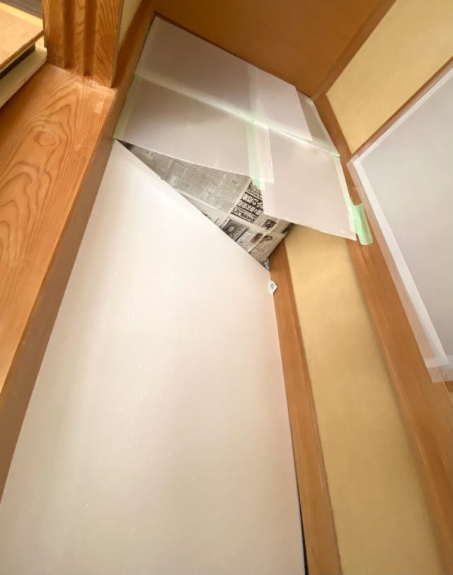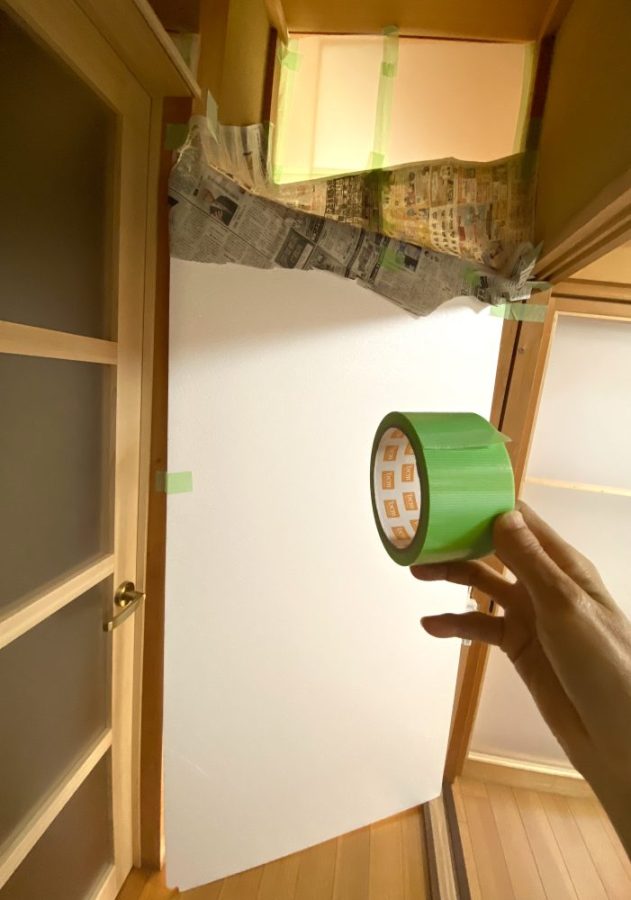 びっくり。見た目はゴツいが、きれいに作ればこのままでもいいくらい(笑)。色も白だし。とりあえず隙間は養生テープで覆い、仕切り戸ならぬ「仕切り壁」完成。