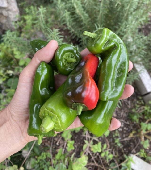 庭で水やりをしていたら、お隣さんからピーマンをいただく。半自給自足の生活、すばらしいなぁ。まぁ、うちも里芋だけは1ヶ月分くらいあるけど〜。