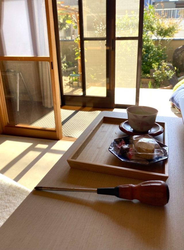 さて。二重窓の設置は、てきぱきと終了。「白枠だと明るくなるなぁ」と父も大喜び。Yさんにはこれまでも、うちの窓サッシや玄関の戸、網戸などを直してもらっている。