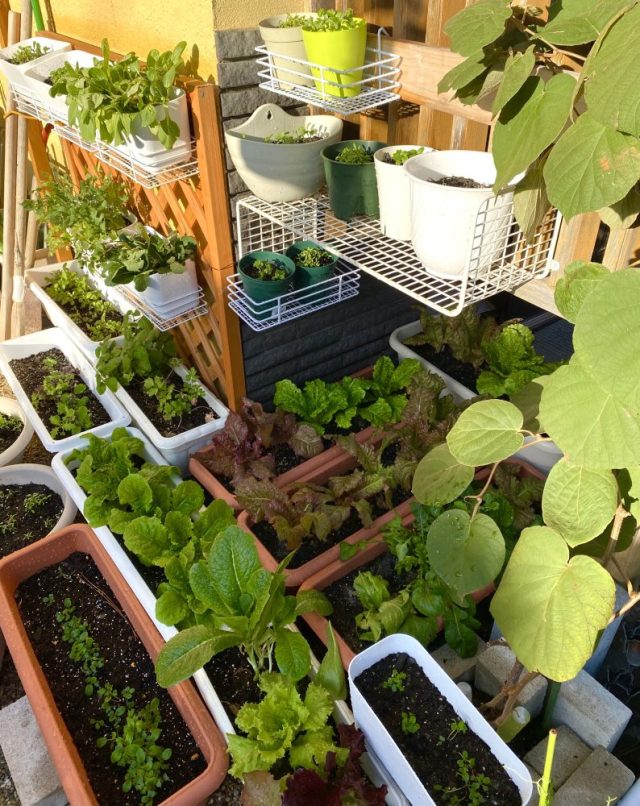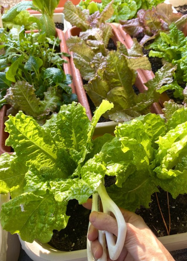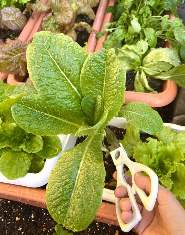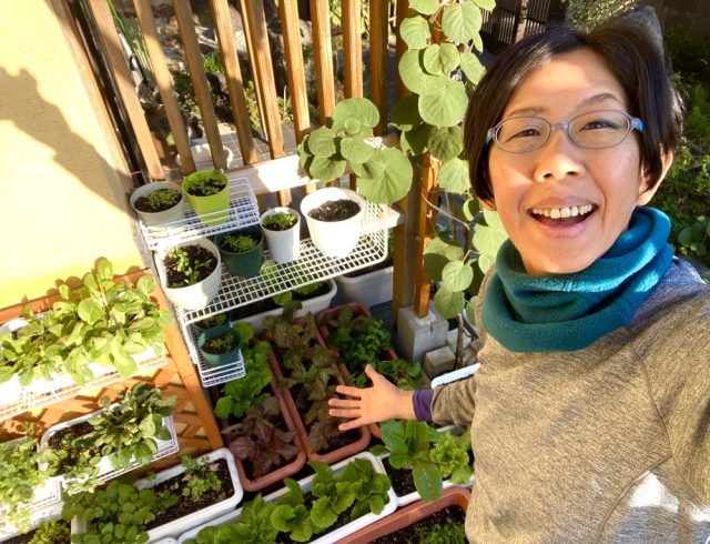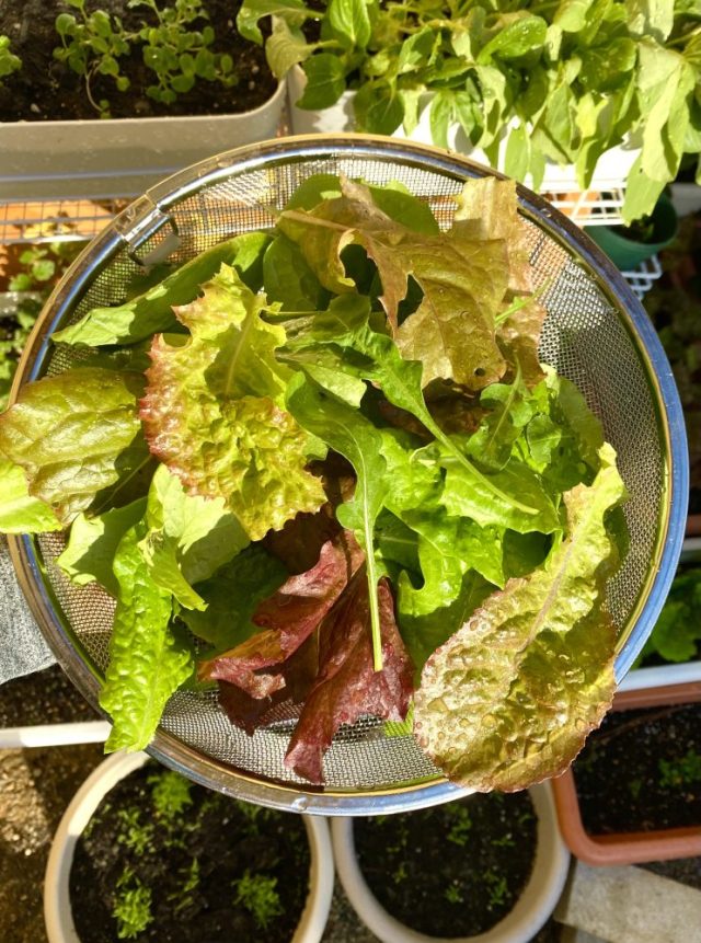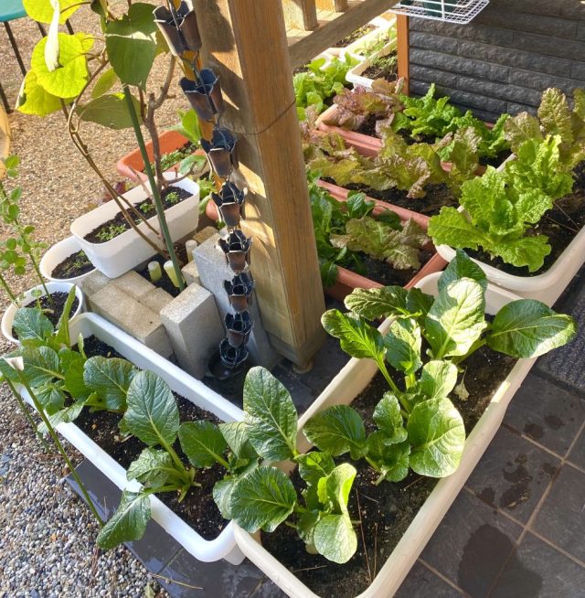 庭のレタス、小松菜、ハーブ類はすくすくと成長中。その姿を見ているだけで、心洗われる〜。寒くなってきたので、水やりはお昼に。今週はなんとしても