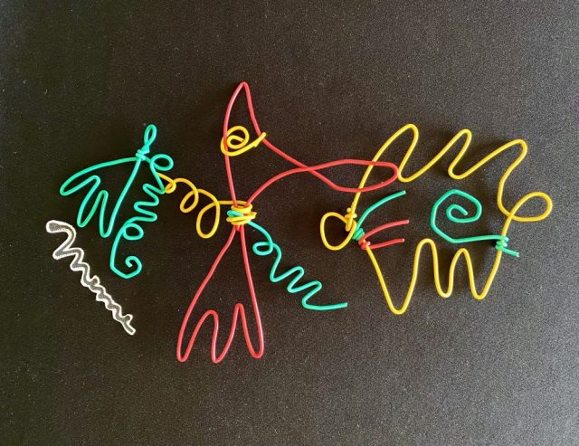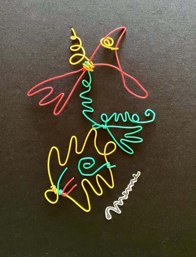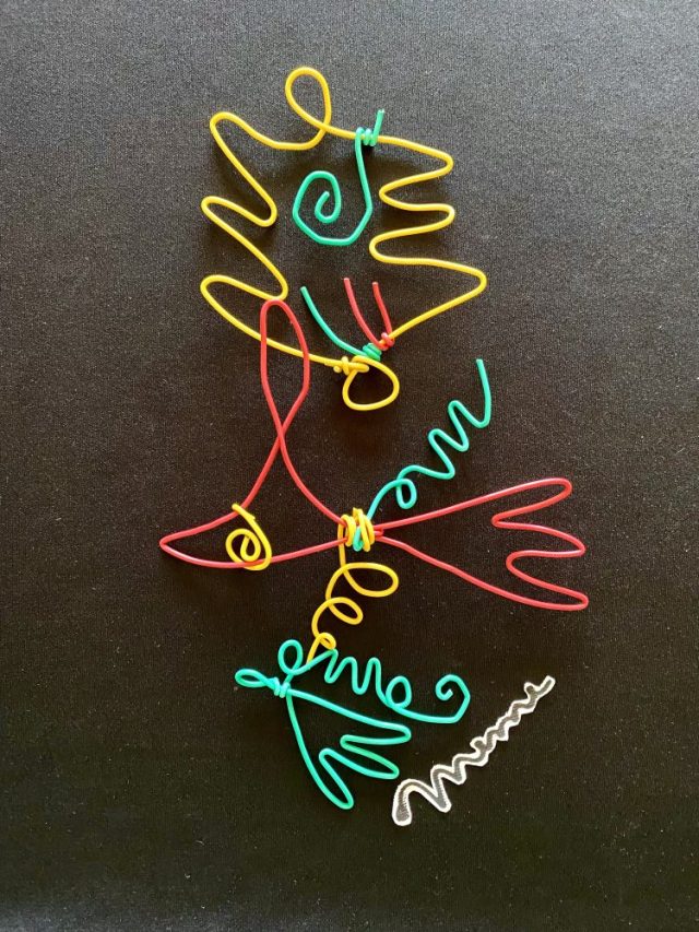 手、手、手が重なり、結ばれる。なんてたくさんのものが、ことが、手から生み出されるんだろう。その源は、心。ワイヤーアート。