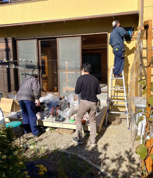 オーレ!ついにこの日が〜。工務店のYさん、Sさん、そして遠方より薪ストーブ業者の大屋さんが、朝イチで駆けつけてくださる。