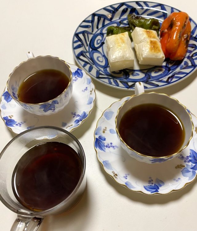 動物にはめちゃ甘い父(だから、私にも甘いのか?)。大屋さんが淹れてくれたコーヒーを味わいながら、次のプロセスへ。