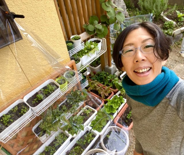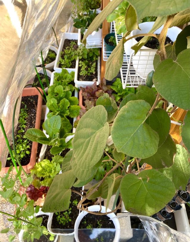 ついに温室が完成。レタスや小松菜、パセリやパクチーなど、今のところ虫もつかずぐんぐん成長中。なんとか元気に冬を乗り越えてほしい。がんばれ〜。