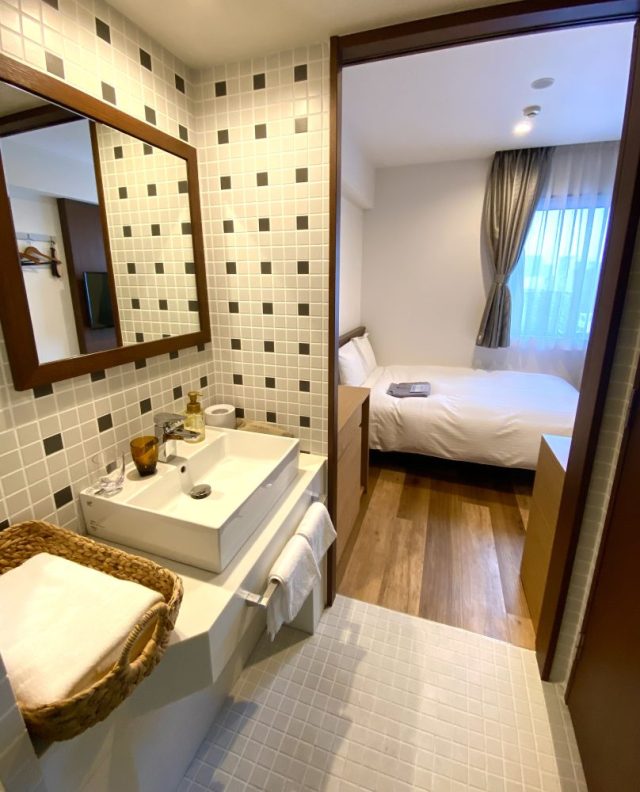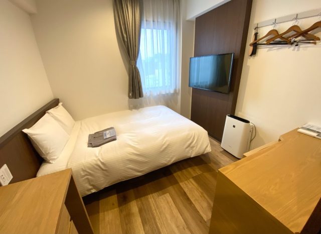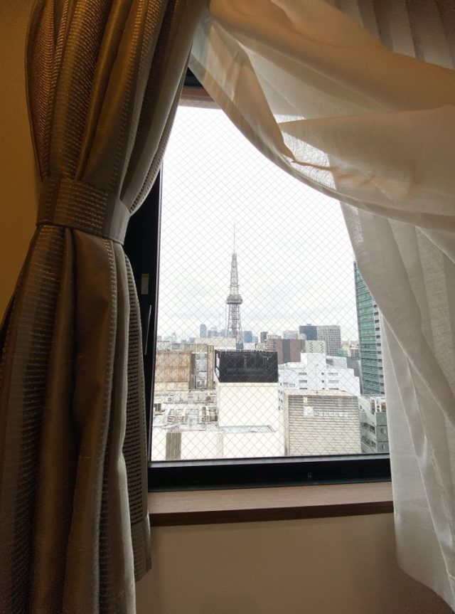 ランチの後は、再び買い物。大荷物を抱え、よろよろとホテルにチェックイン。栄駅から徒歩2分。初めて利用する安ホテルだけど、清潔感があっていい感じ。カーテンを開けると