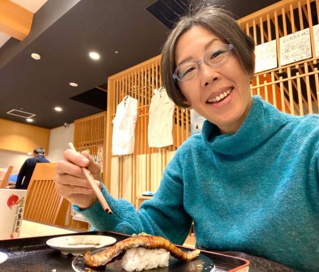 って、すごいな〜。スペインから来ると。まぐろ、ぶり、うなぎ、えび天、ナス味噌・・・などをのんびりつまみながら、ひと休み。