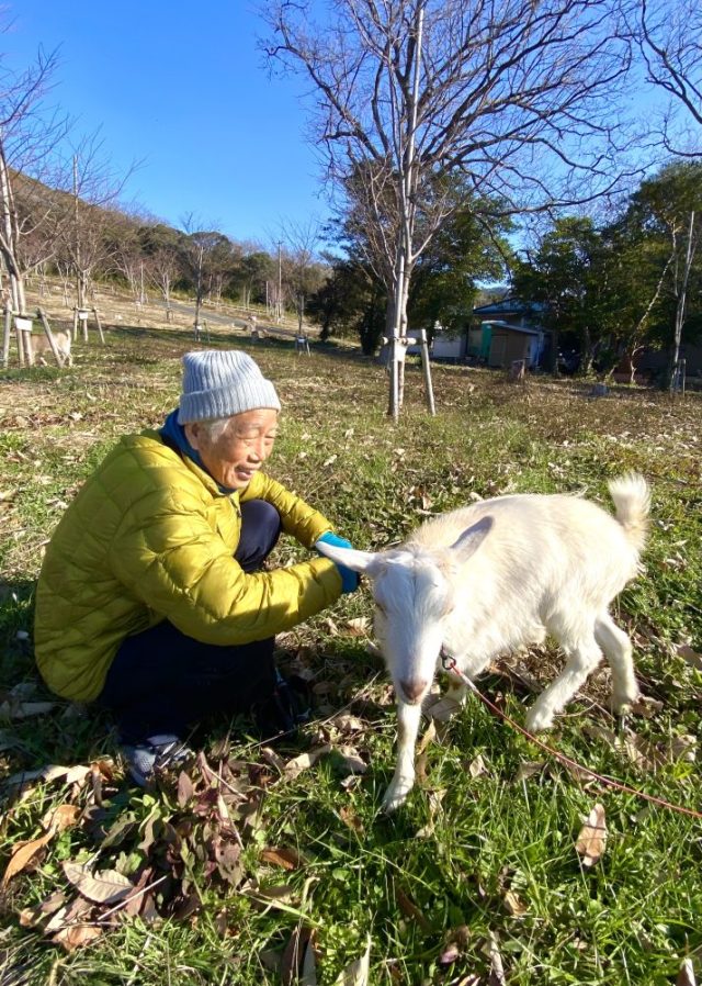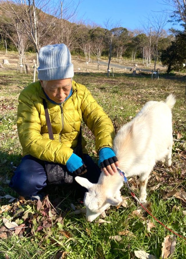私たちが立ち上がると、2頭は再び熱心に草を食べ始めた。「おいしい葉っぱを持ってきてあげたいなぁ」父がぽつり。柿やススキ、ビワの葉っぱがヤギの好物らしい。次回は持って来られるかしら。