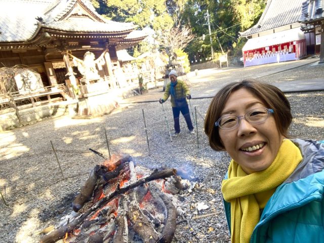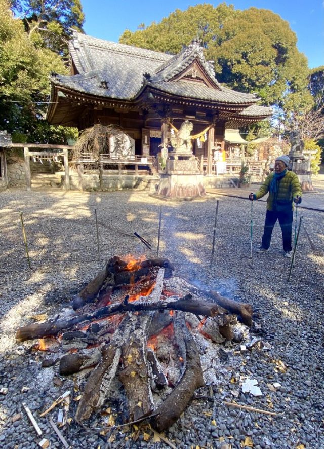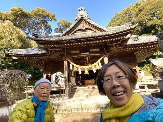 靴を脱いでお参りをし、お賽銭を投げ、無病息災を祈る。田舎の小さな神社だからこそ、こんなにのんびり初詣が楽しめる。父もほっこりくつろいだ笑顔で、境内を散策。