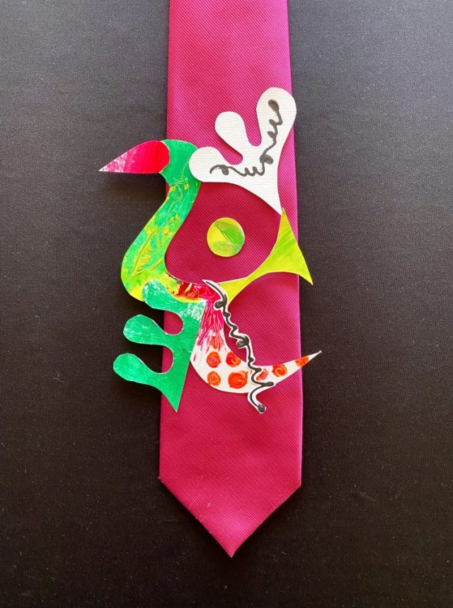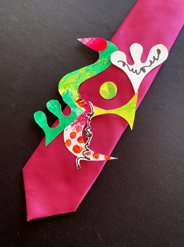 【一日一作プロジェクト】ネクタイアート「遊芽シリーズ」を作った(2022年の作品を紹介中)。寒空の下、庭からものすごい音が響き渡る。