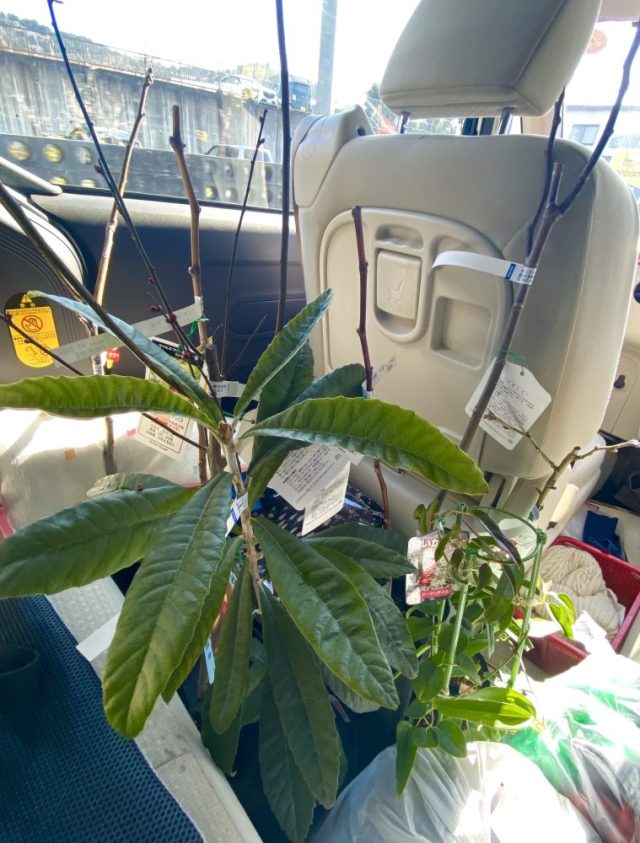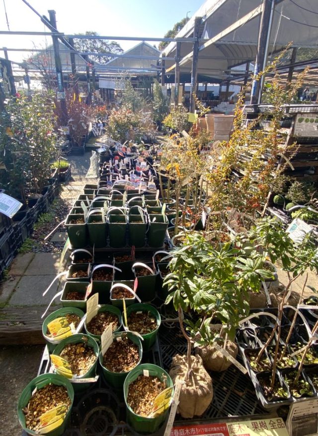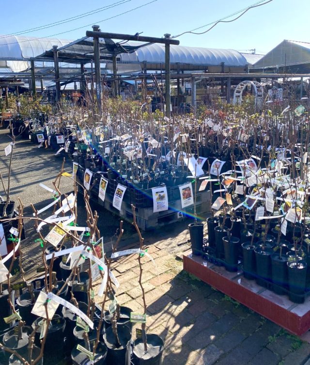 冬の休眠期に植える果樹たちを買いに。今回は「花」でなく「果樹」なので、ご覧のとおり、見た目はめちゃ地味(笑)。葉がついていないので