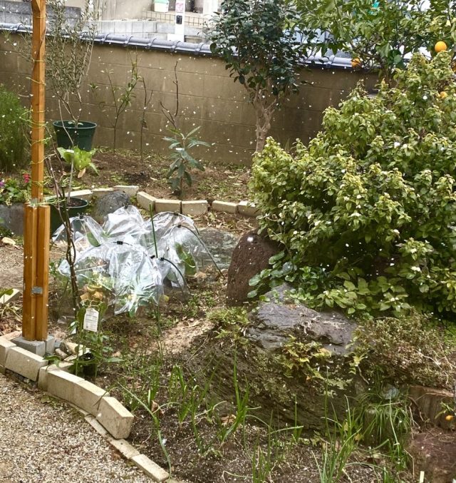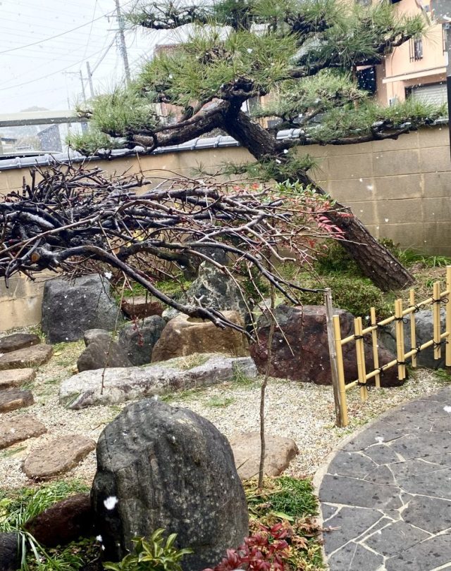 なんと豊橋にも初雪が。ちらほら舞う程度とはいえ(写真)。さすがに庭作業を続ける気になれず(たぶんやり出すとハマるんだろうけど)