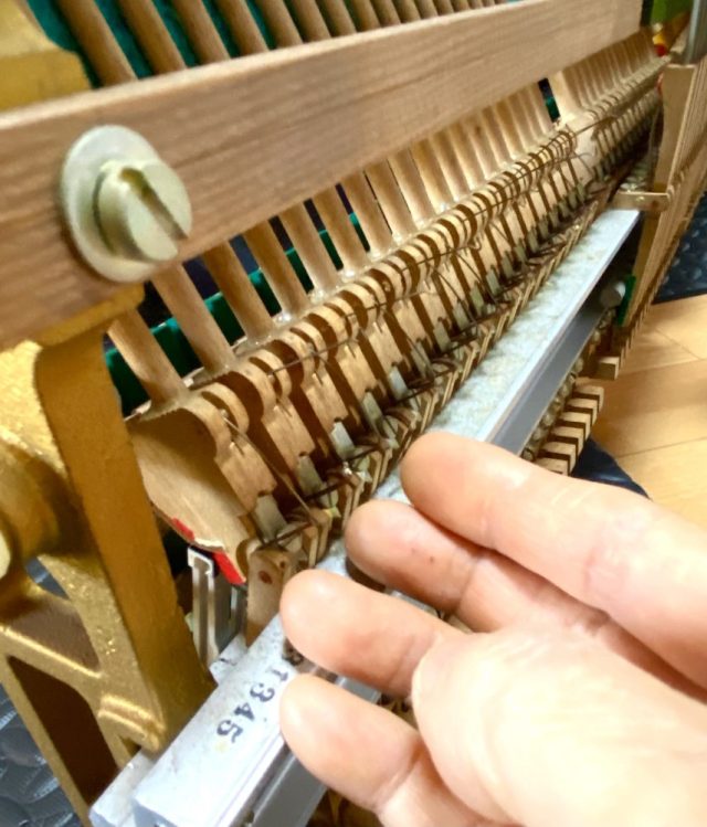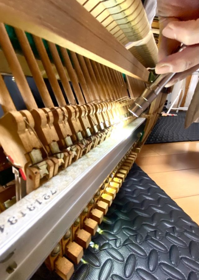 そりゃあ最後の調律は、はるか20年以上前だから〜。今回はピアノを開いて各パーツをチェック。構造的な問題もしっかり診てもらう。いわゆるピアノドッグ(←人間ドッグ)。