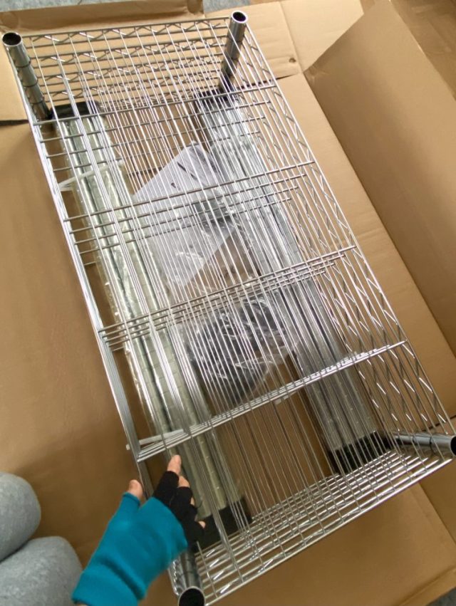 5段スチール棚が無事完成。ホームセンターの「カーマ」で買ったのだけど、これめちゃおすすめ。7980円でしっかりしてて。とにかく組み立てが簡単(←ここ重要)。