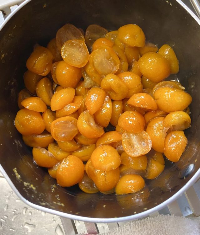無農薬だから、皮ごと使える〜。去年はシナモンとはちみつで煮たので、今年はワイン、みりん、はちみつ、塩少しでやってみた。