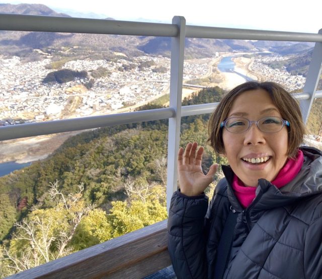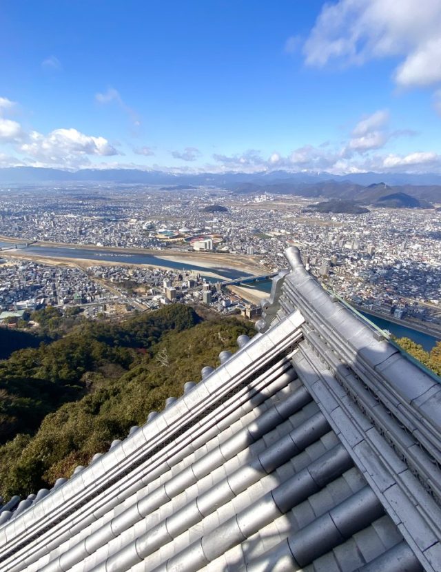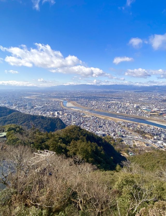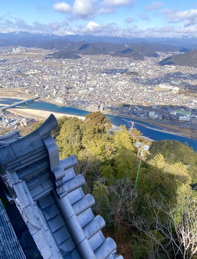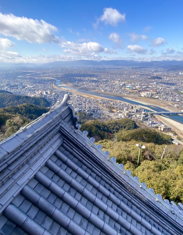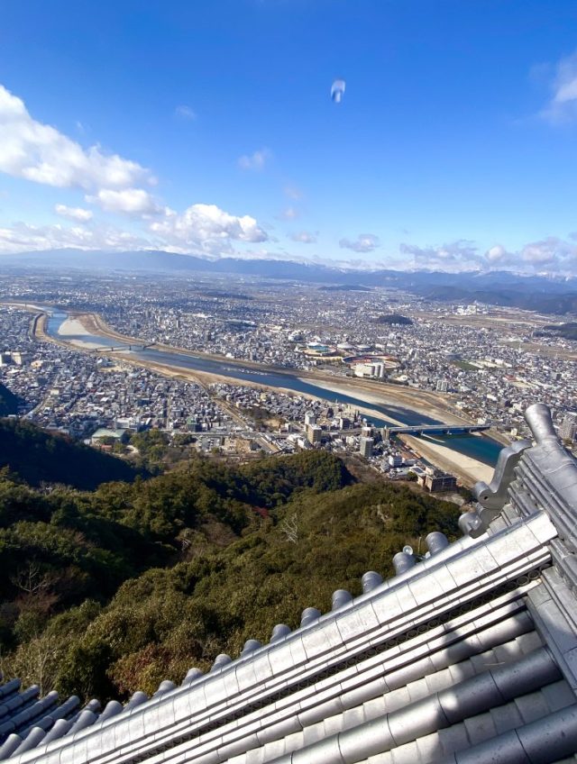 自然と湧き上がる好奇心。みなさん、楽しそう〜。ほんとすごい場所に城を作ったもんだ。その時、ふと気づく。こうして上から眺めると、長良川がランドマークとなり
