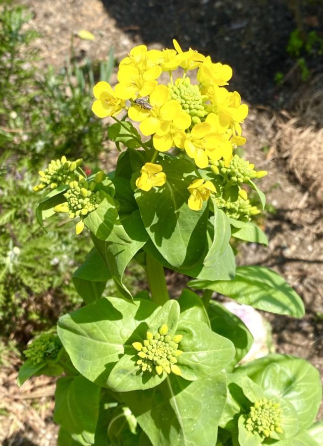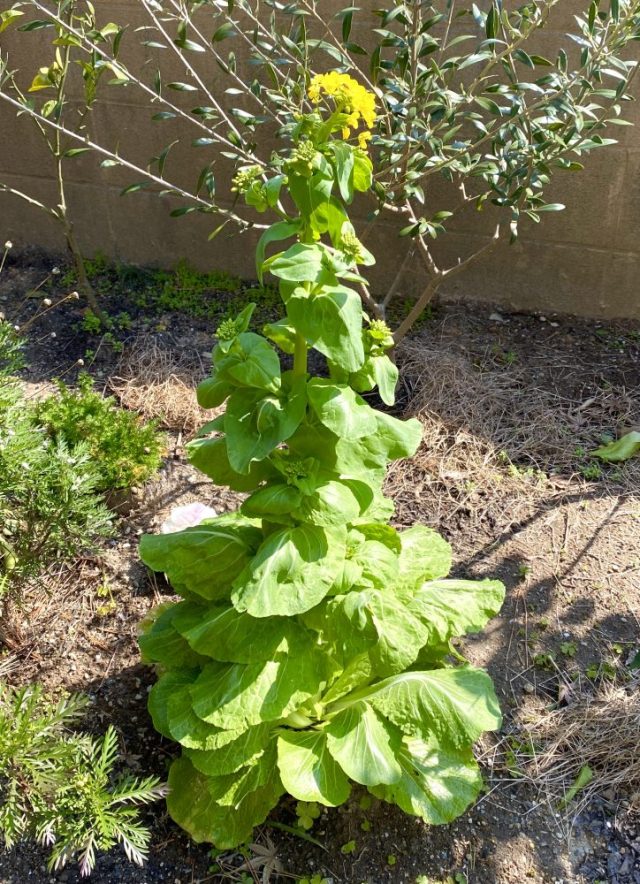 と思えてくる。こんなに立派な立ち姿を見たら「このエネルギーを全て閉じ込めて、白菜(実)を作るんだなぁ」としみじみ。感謝して味わって食べよう〜。この黄色い花をつけた植物をみて