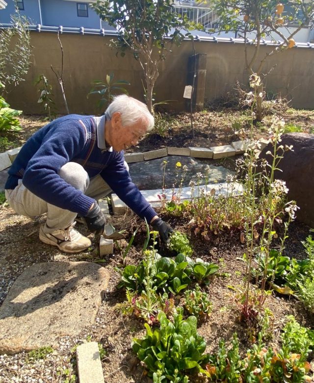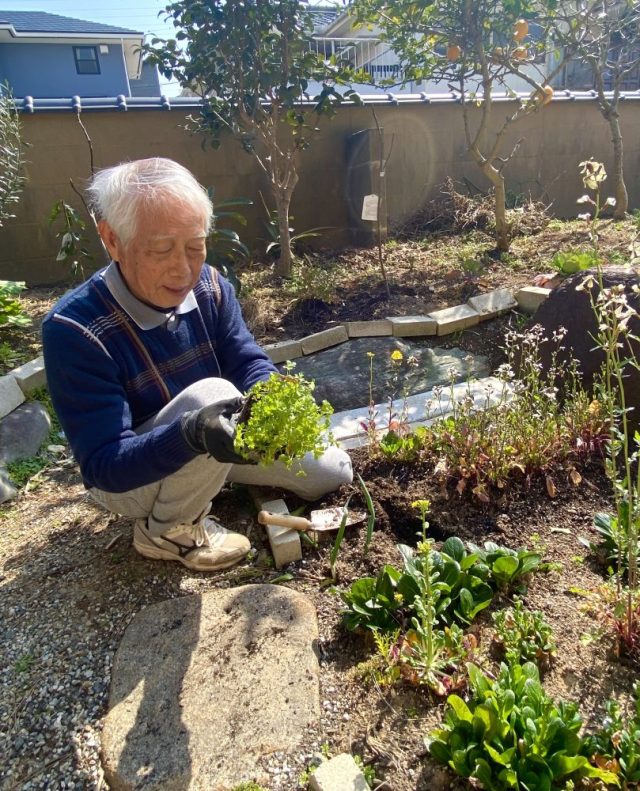 画材を運べるように。家の修繕ができるように。肥料や土を運べるように。使える体、役立つ肉体がほしい。さて。ひと休みしに庭に出ると、父が植物とたわむれていた。平和やのう。