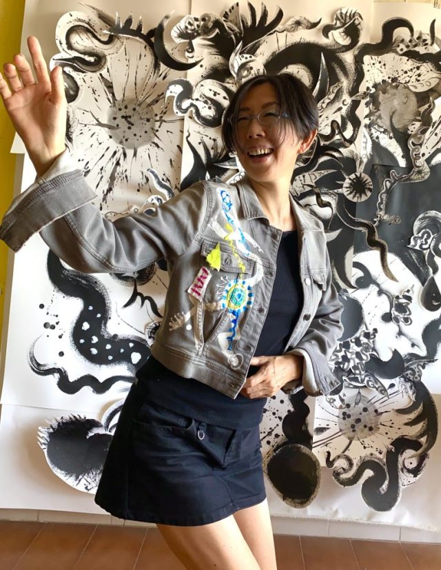 実用性は完全度外視。アート100%。服というよりコスチューム。身につけて動く作品。「とんでもなく+飛んでいく+もも+衣」。昨年、流浪の民で思うように作品作りができず、アイデアと情熱だけが