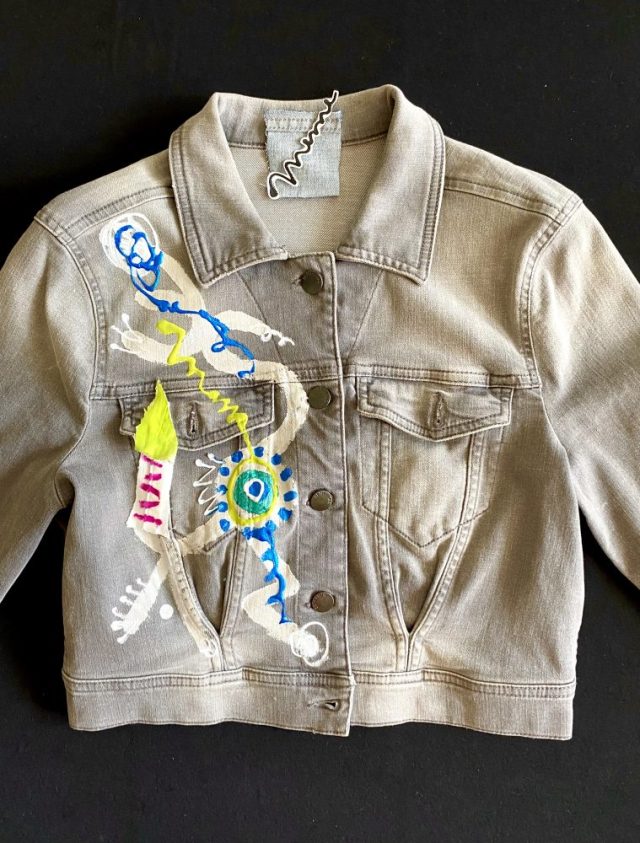 と決めた。これまでは、この写真のように既存の衣類にペイントしていた。それはそれでいいのだけど、布を使って造形そのものをしてみたい。そこで、新しいプロジェクトを始動。