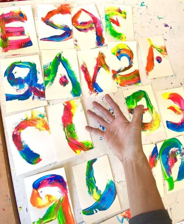 作品作りは、身近なところから。今回の布アートは家の中から、家族と、友達と、日常生活の中で始まる。アトリエの孤独な作業とは異なる世界。かなり大きなサイズになるし、人の手だって時間だってかかる。だからこそ
