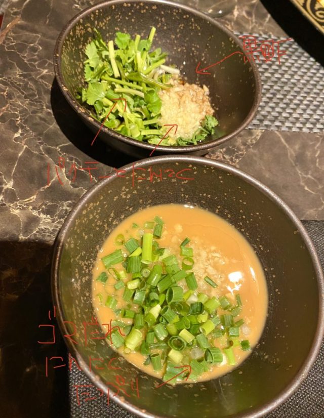 「ここで自分でタレを作って席まで持っていくんだよ」