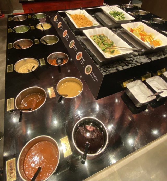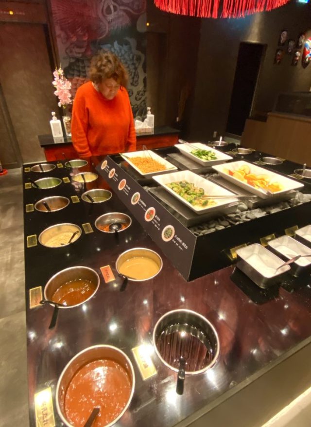 多動症やからー。さっそく予約先のレストランへ。火鍋?ん?なにそれ?店に入るや、見たこともない「たれコーナー」がどどーんと広がっている。
