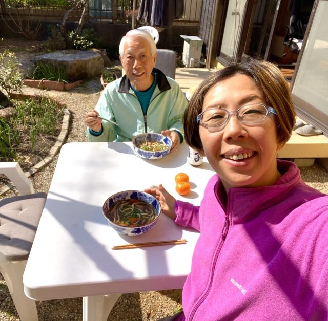 午後から庭へ。父にお願いしていくことを伝える。伸びたツルを紐でしばるとか、水やりとか追肥とか。さらに台所へ。