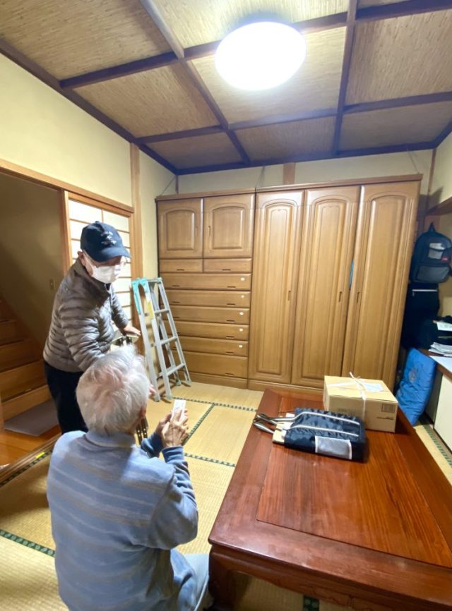 父の親友Tさんが登場。引越しで不要になった物がたくさんあるとのこと。父には新品のカップ&ソーサー。私には習字のセット。ほぼ新品の天井照明は脚立持参で