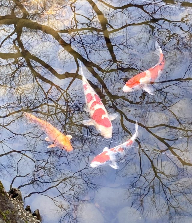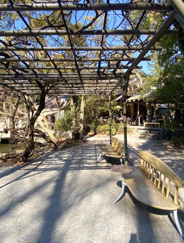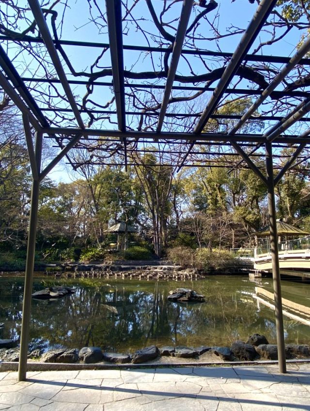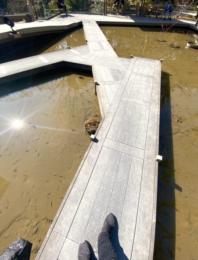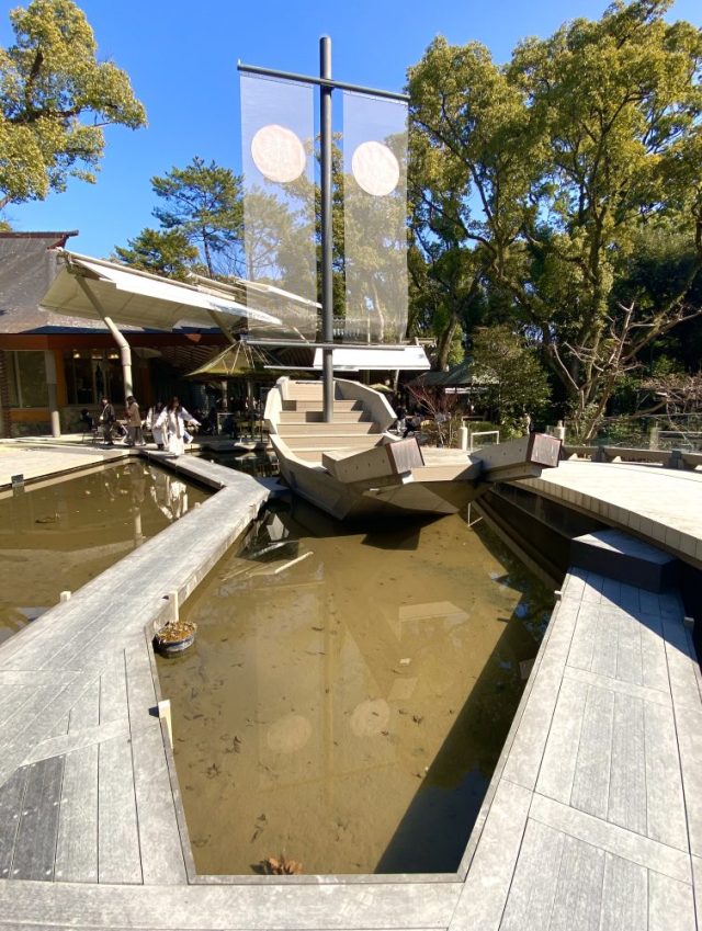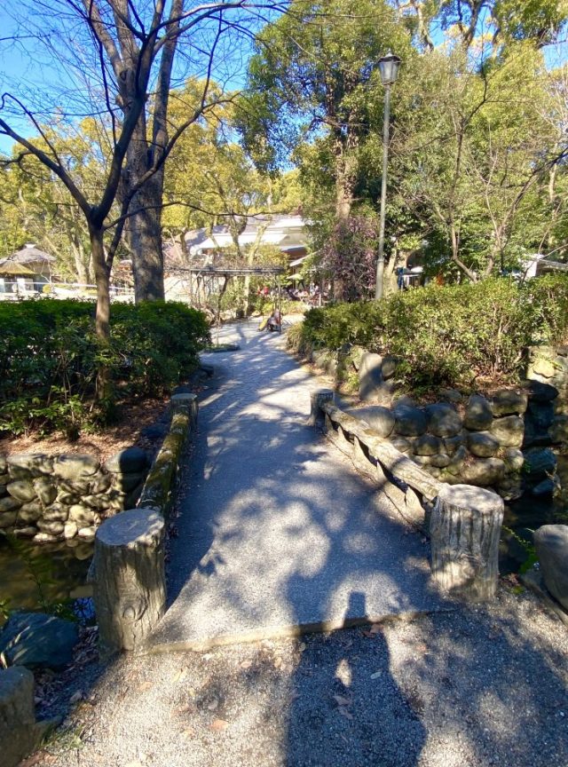 さて。最後に「庭園」へ。池、橋、金魚、船、花々、ベンチ&テーブル、軽食コーナーまで。にぎやかなゾーン。きしめんやアイスも食べられる。しばし日光浴しながらベンチでひと休み。