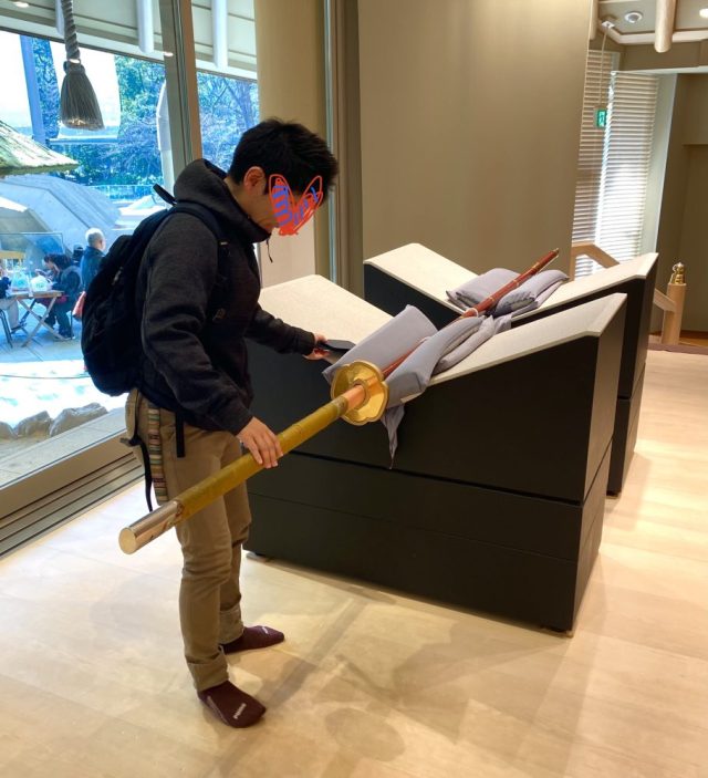 さらに、併設されている「草薙館」へ。熱田神宮といえば「草薙の剣」を祀ってあることで有名。その時、入口で並んでいたおばさまが、