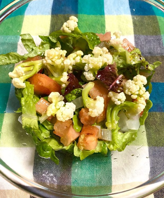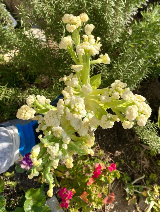 畑作業。毎日、毎月が実験。今回、初挑戦のカリフラワーもいびつな形ながら、なんとか収穫までたどり着く。
