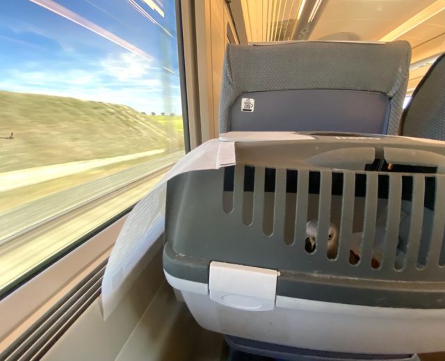 そんな表情をしていた。それから、ココを思う存分抱きしめ、30分ほど遊んだ後、移動用のゲージに入れた。ゆっくりしてはいられない。これからまだマラガまで5時間半の旅が待っている。ココはまるで