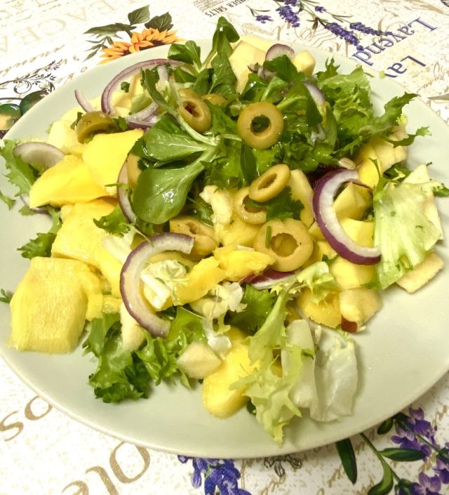 急にサラダが食べたくなり「マンゴー、アボカド、紫玉ねぎ、リンゴ、オリーブの実、レタス」をカットして、ガツガツと〜(写真)。明日は用事でセントロへ。ついでに買い物に駆け回る予定。