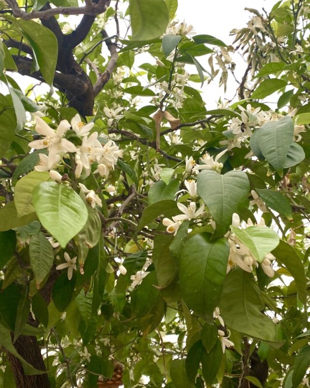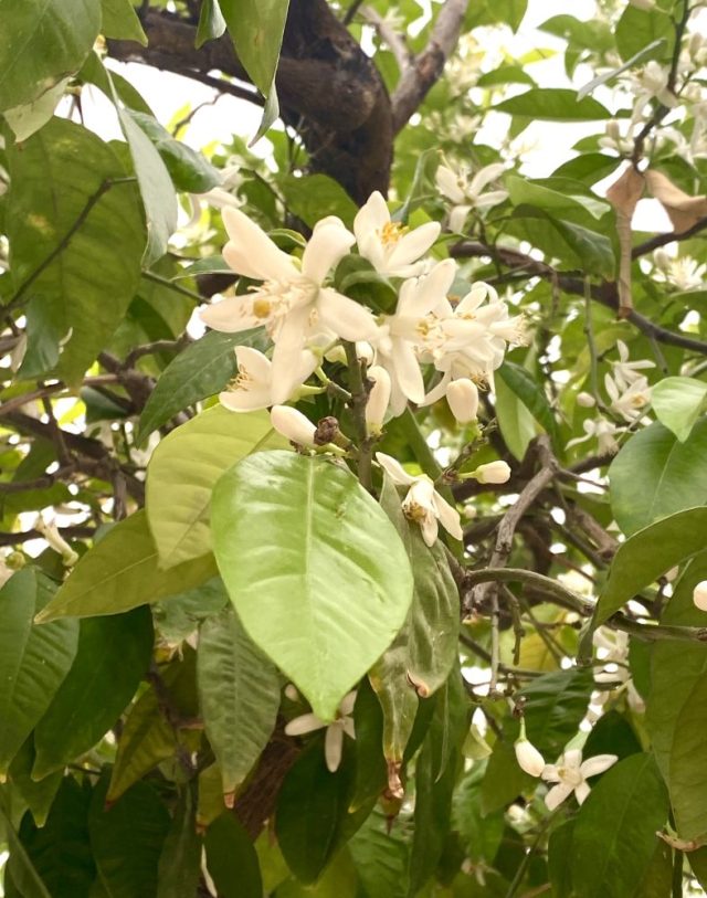 ふらふらと〜。残念ながら青空はないけれど、白いアサール(オレンジの花)が咲き乱れ、甘い香りを放っている。スペイン到着早々、手続き問題であれこれと作業に追われ