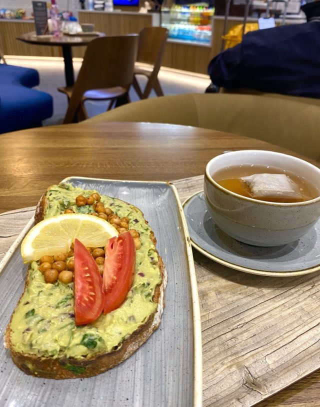 のサンドイッチ(トースト)を発見。そこにぎゅっとレモンを絞って。めちゃ私好み。紅茶を頼むと、丼のようなカップにどどーん。ええやん。