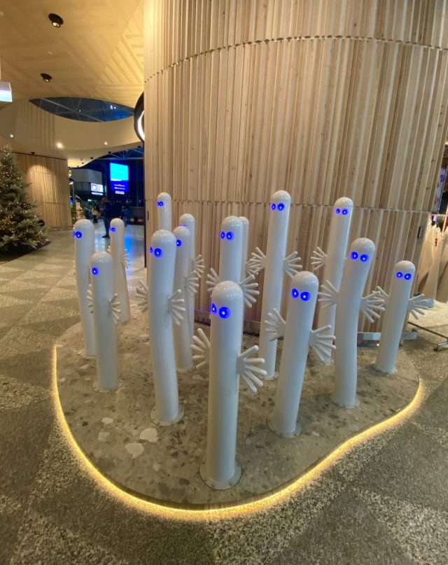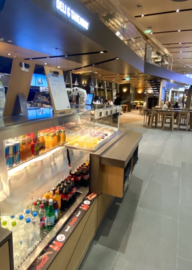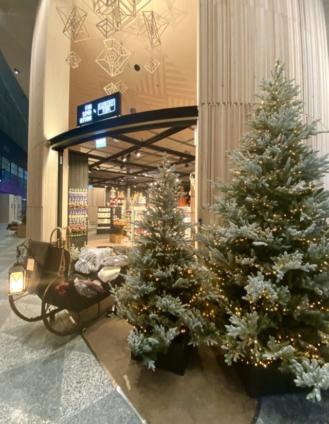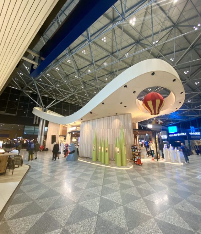 ってか、これが冬のデコレーションなのか。実際、外は雪景色だし。お店が開いているので、空港そのものに活気があり、わくわく〜。さっそくカフェテリアへ。