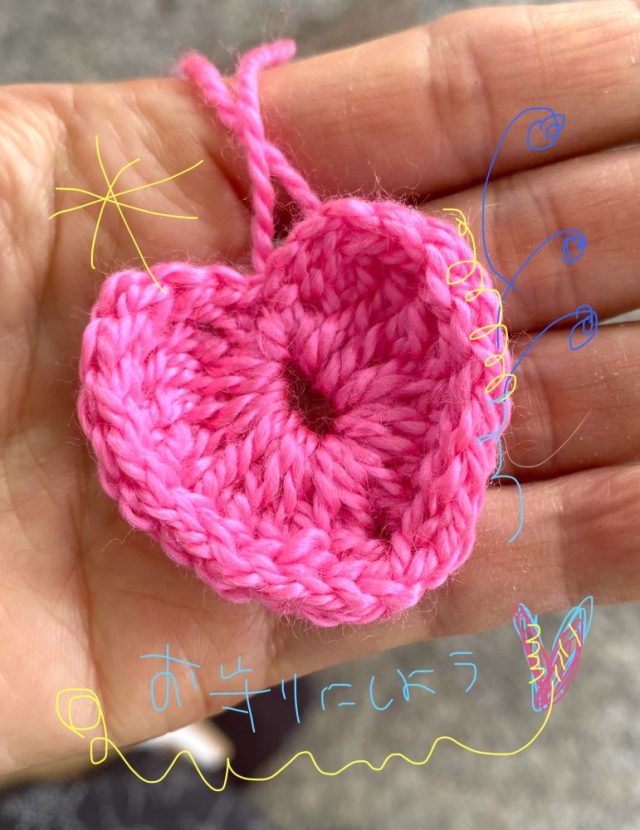 きゃー。かわいいーーーっ。うれし〜。思わず両手で握りしめてしまう。実は「手続き問題」で、これからどうなるのかまるでわからず。不安を抱えて1人、遠くの町までバスで。そんな時にピンクのハートが〜。