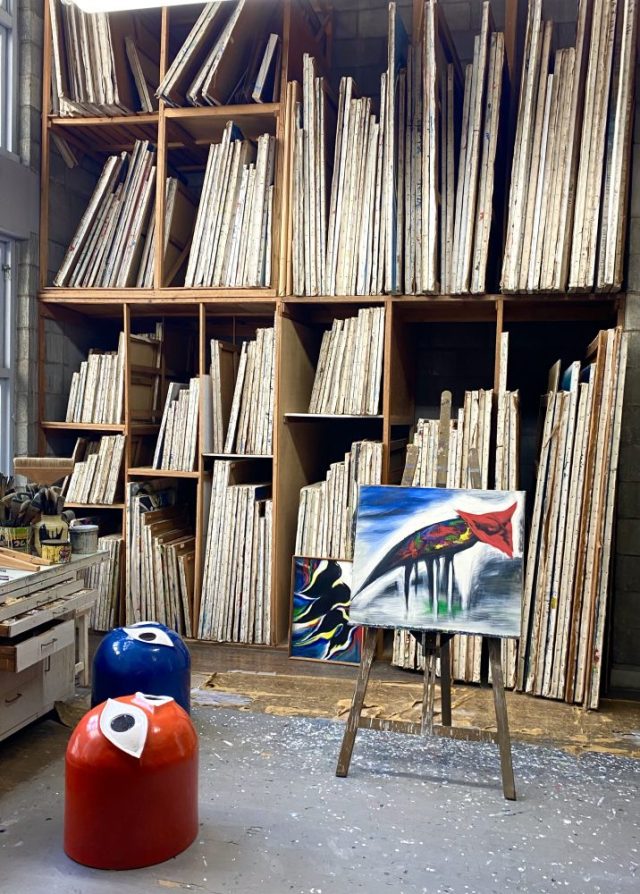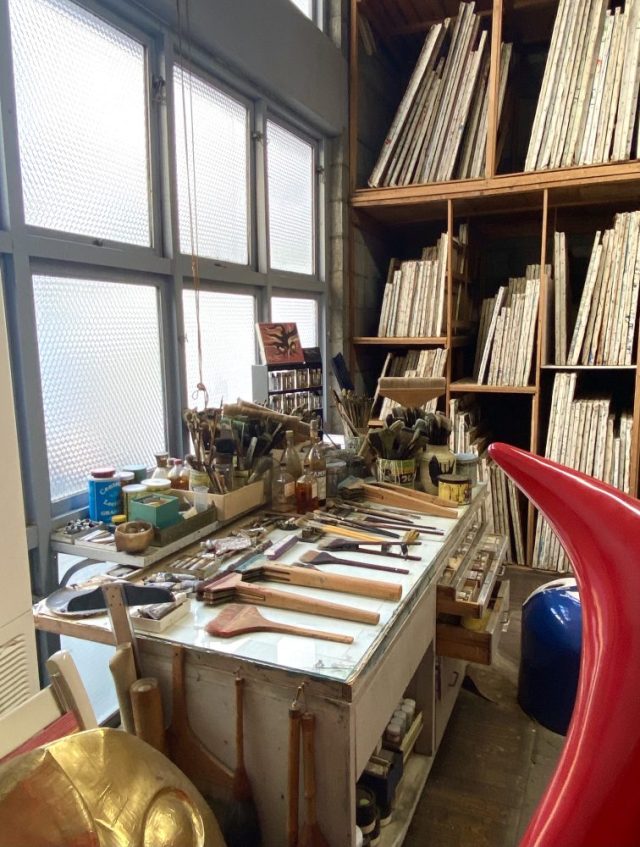 あの作品たちが生まれた場所。タローさんが命を注ぎ、制作に打ち込んだ作業場を見てみたかった。そして。その場所は想像の何倍も広く、とてつもなく高い天井を持ち、ひとつの宇宙のようだった。
