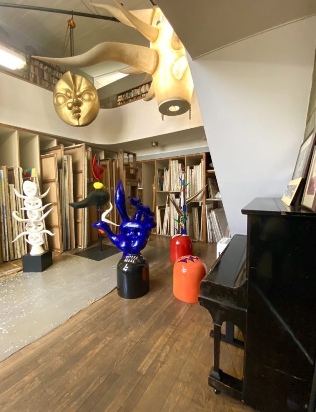 主人の帰りを待っている。ピアノまで置かれて。タローさんが亡くなる84歳まで、40年以上暮らした住居兼アトリエ。なんて居心地のいい空間なんだろう。