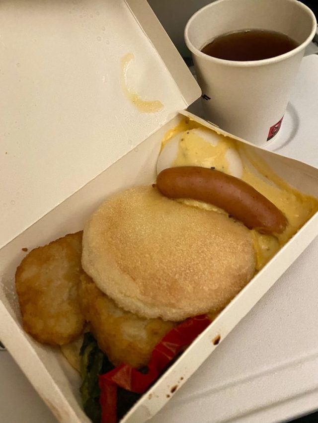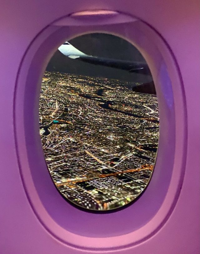 うそ。そんなに?横になると、睡眠の質は格段にアップする。まだ機内が暗いので、再び横になる。するとまた熟睡。目が覚めると、いつのまにか機内が明るくなっているではないか〜。
