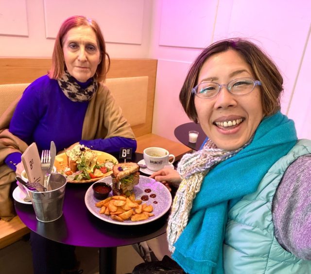 見た目って、大切だ。盛り付けもすてき。一気に食欲が〜。ホット抹茶ミルクがおいし過ぎて一気飲み。なんせ外は13度。真冬や〜。