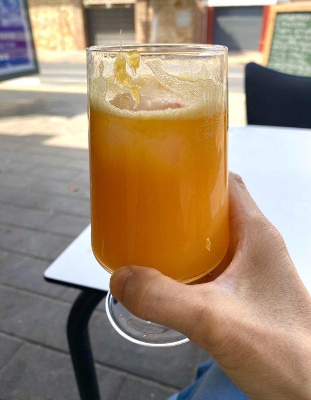 今日は、しぼりたてのオレンジジュースでエネルギーチャージ。スペインのバルならほぼどこでも、その場で作ってくれる。これで400円。甘くてさっぱりしてて。めちゃ元気出る〜。