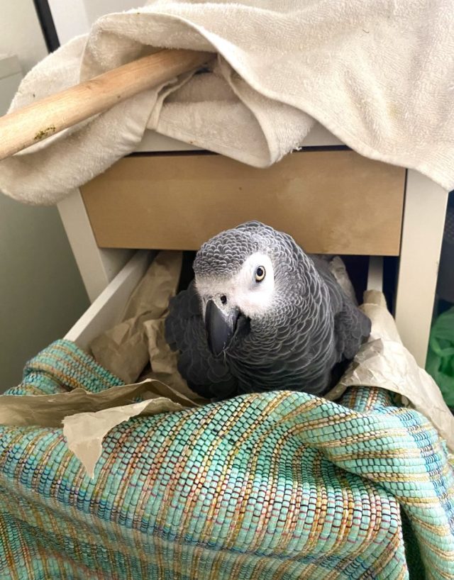 それしか道はない。部屋にある唯一の家具、3段引き出しを「自分の陣地&ベッド」に決めたココ。めちゃごきげん〜(笑)。「ははは」と思わず笑みがこぼれた瞬間、ふっと新しい考えが。