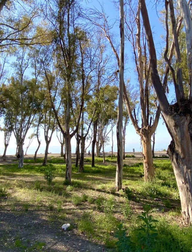 波のない穏やかな地中海。その透明度に、吸い込まれていきそうになる。ビーチにはすでに、水着で寝っ転がる人々が。