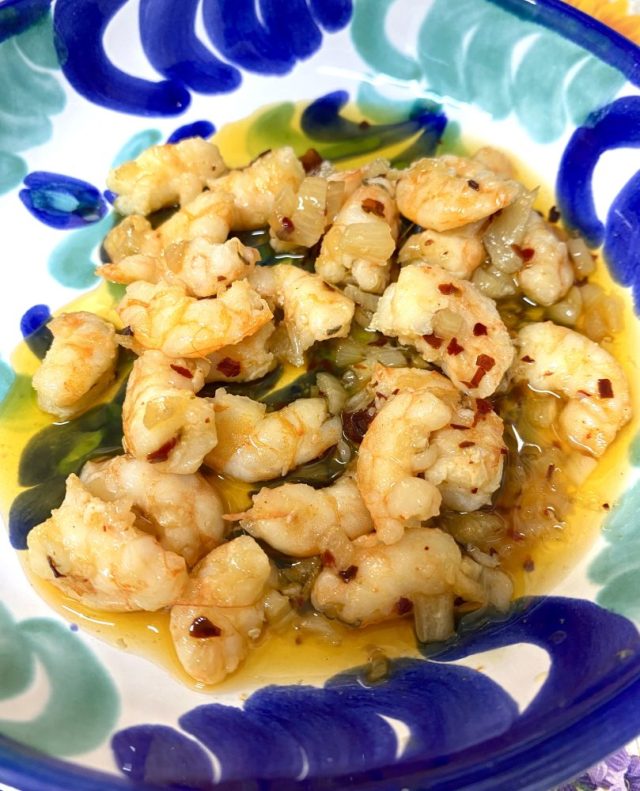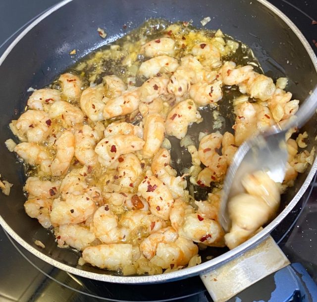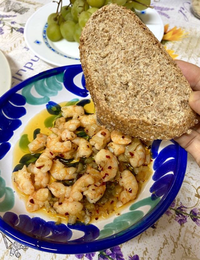 「えびのピルピル作るわ〜」「じゃあ私はサラダ。焼き立て全粒粉パン買って来るね」