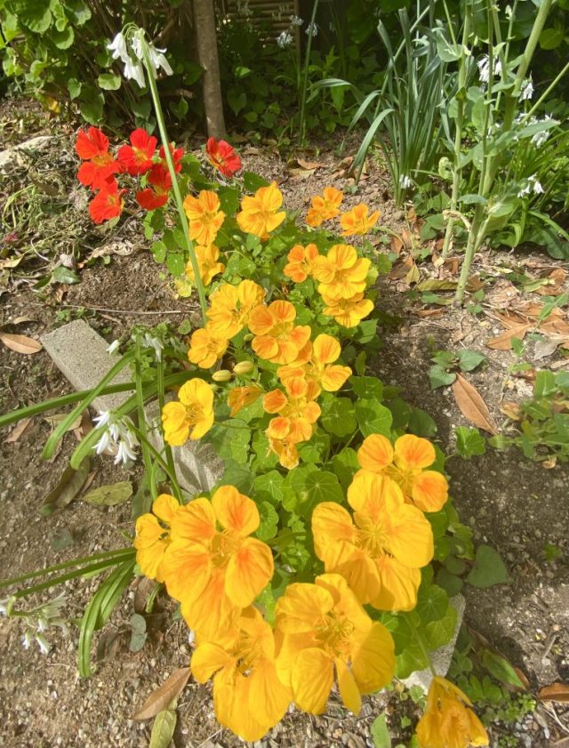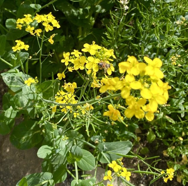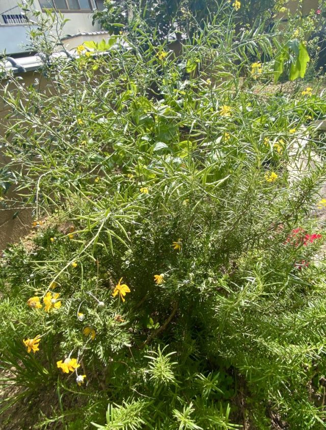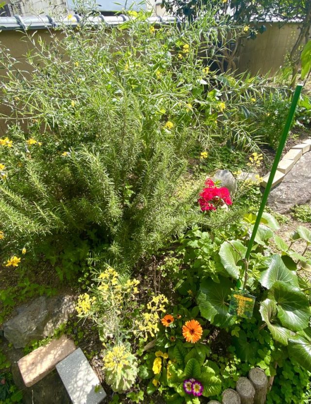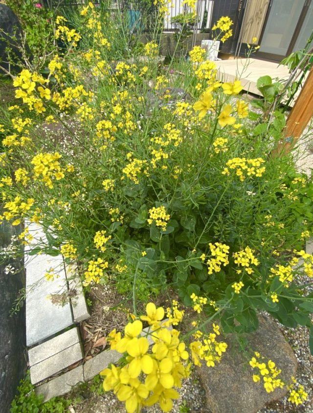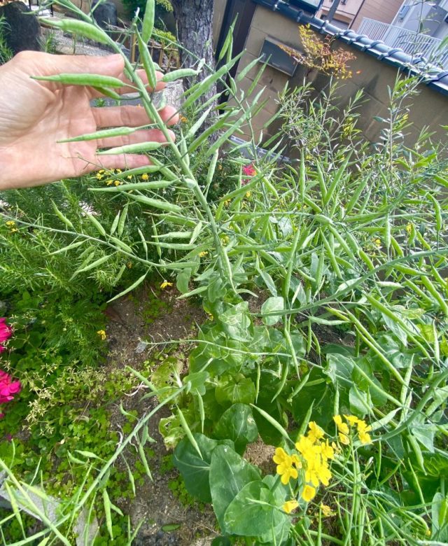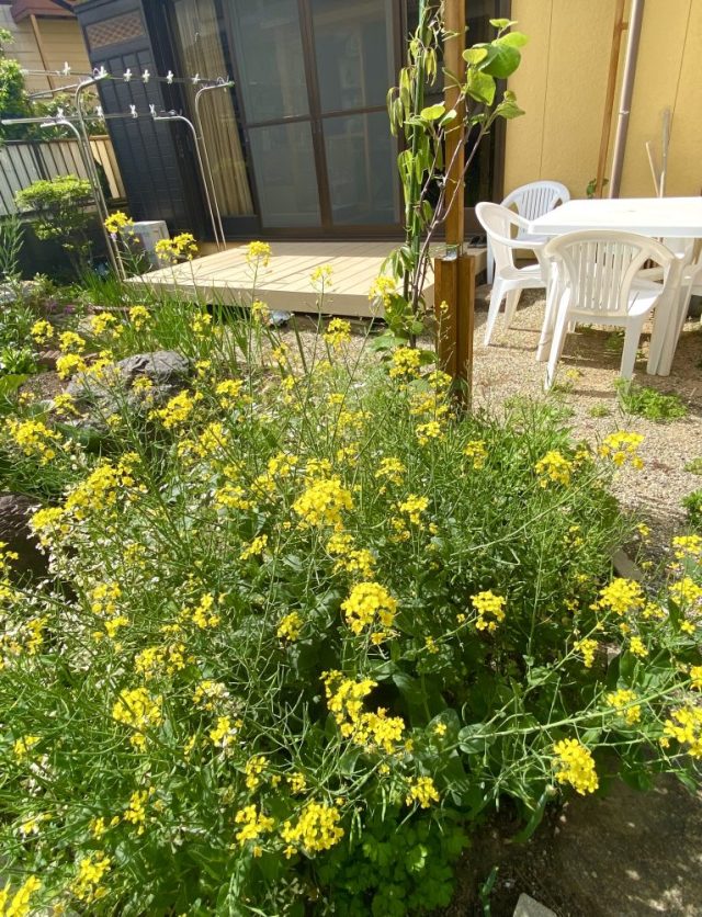 スペインへ発つ前、食用リーフを全てプランターから大地へ植え替えて行った。トウが立って食べられないけど「花が咲いてくれたらいいな」と思って。そしたらなんと。