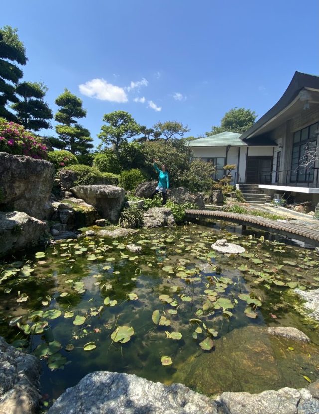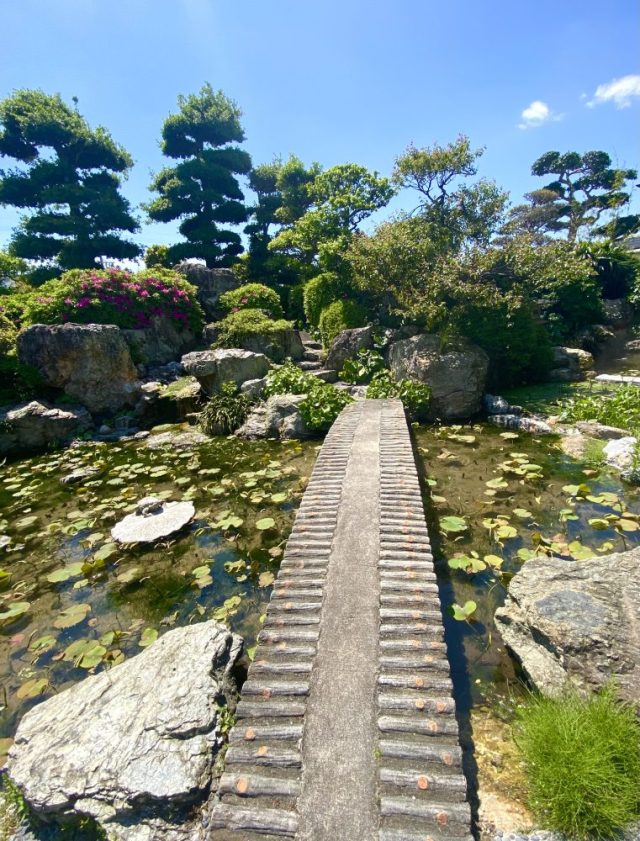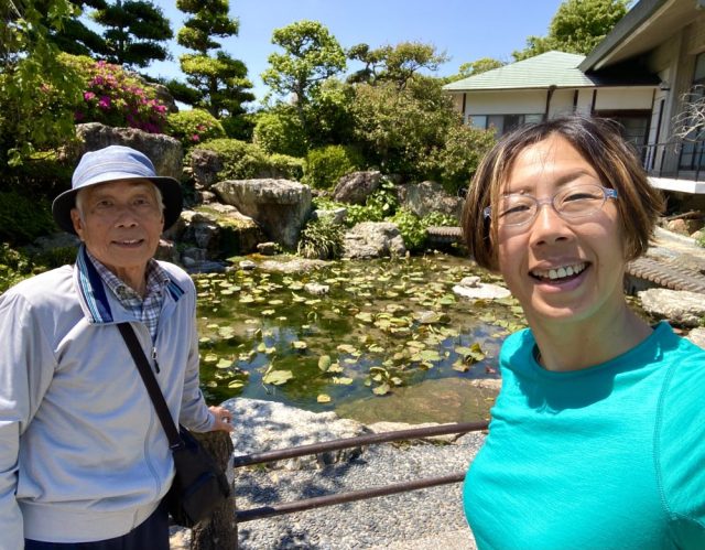 緑いっぱいの小道を父と歩く。池を眺め、石橋を渡り、見上げれば青い空が。ぽかぽか陽気で、眠たくなってくる〜。これまで考えたこともなかったけれど